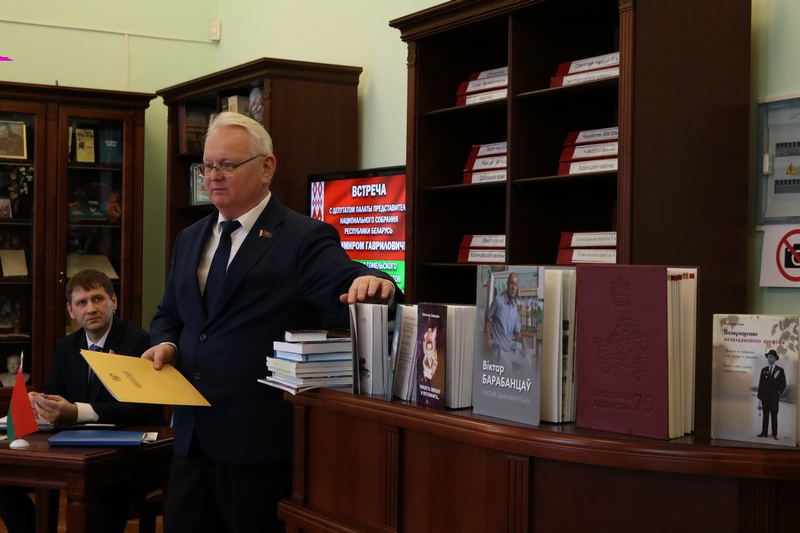 Владимир Николаевич представил результаты серьёзной и насыщенной законотворческой деятельности Парламента Республики Беларусь, ратификации договоров, торговых и таможенных соглашений со странами БРИКС. Отмечая внешние вызовы и санкционное давление, он выразил уверенность в сохранении мира и стабильности в нашей стране благодаря политической мудрости лидера белорусского государства. Как давний друг и надёжный партнёр, Владимир Гаврилович передал большую личную коллекцию книг, которая пополнит фонд библиотеки.