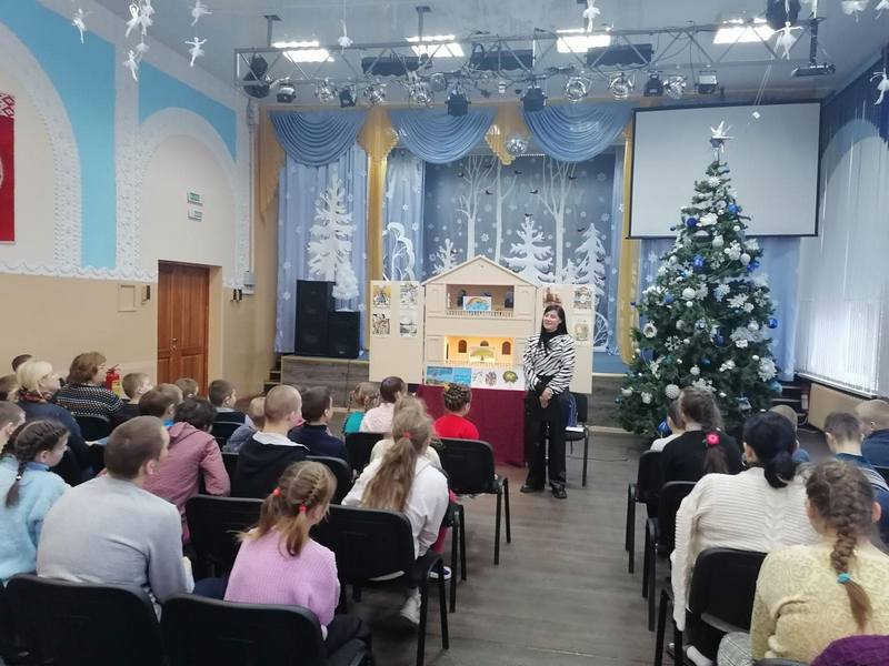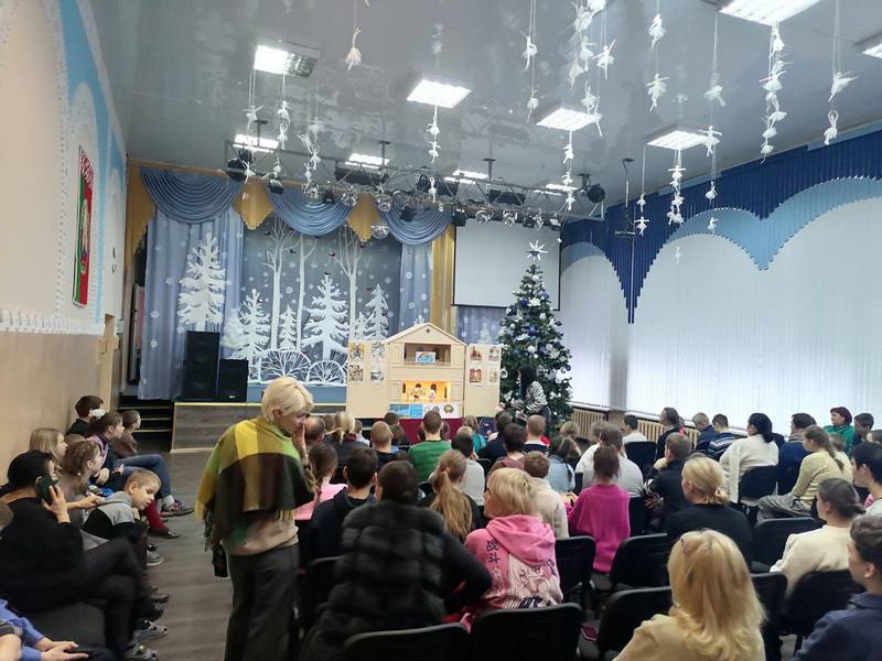Директор библиотеки Татьяна Забияко тепло поздравила ребят и педагогов с зимними праздниками и с радостью представила главный подарок от библиотекарей – интерактивное представление кукольного театра-батлейки «Здравствуй, лес, дремучий лес» по правилам безопасного поведения.