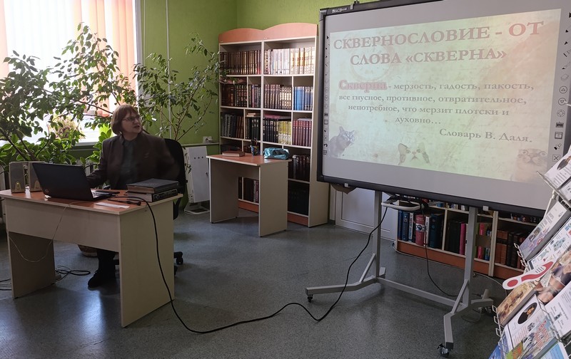 В наши дни очень много говорят о культуре речи, данную тему не обошли стороной и библиотекари отдела обслуживания учащихся 6–9 классов. 5 февраля заведующий отделом Ольга Хорсун подготовила и провела для учащихся гимназии № 14 познавательно-развлекательное мероприятие «Слово – не воробей…», на котором шла речь о сквернословии – как пороке и болезни. Ольга Владимировна объяснила ребятам, что пороком оно считается, когда ещё можно остановиться: не сказать, не произнести «мусорное» слово. Но потом постепенно сквернословие становится болезнью. В ходе мероприятия учащиеся узнали, как пагубно влияет ненормативная лексика на организм человека и его здоровье, услышали советы по избавлению от сквернословия, согласились с призывом беречь чистоту языка.