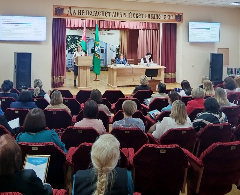 В рамках работы семинара были представлены доклады специалистов Национальной библиотеки Беларуси. Об основных итогах деятельности публичных библиотек республики в 2024 г. рассказала заведующий сектором мониторинга и координации деятельности библиотек научно-исследовательского отдела библиотековедения Наталья Корнейчук, методические разработки Национальной библиотеки Беларуси в помощь публичным библиотекам страны представила заведующий научно-исследовательским отделом библиотековедения Ирина Кукета, опытом работы по созданию электронной библиотеки поделилась Оксана Буйчик, заведующий сектором формирования цифровых коллекций отдела формирования электронной библиотеки.