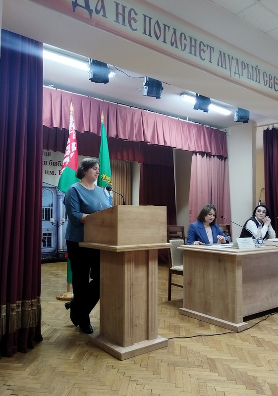 Во второй части семинара с докладом об аспектах предоставления информации в Республиканскую базу данных «Сводный регистр учреждений культуры и искусства» выступила Екатерина Седько, библиотекарь 1 квалификационной категории отдела библиотековедения областной библиотеки. Учёный секретарь Светлана Курашова осветила основные направления и перспективы международного библиотечного сотрудничества, подробно представила грантовые программы фонда «Русский мир».