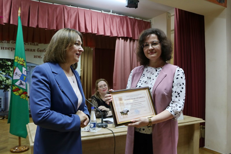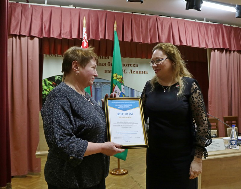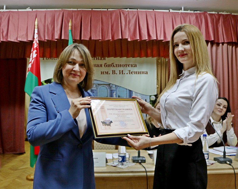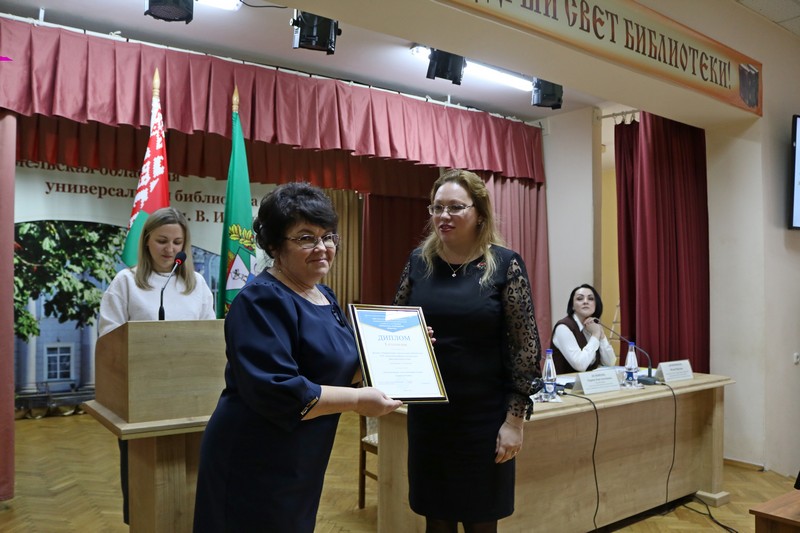К 30-летию областного конкурса на творческую индивидуальность каждой библиотеки в работе с читателями «Библиотека, необходимая обществу» Вероника Степулькина, заведующий отделом библиотековедения областной библиотеки, рассказала о его самых активных участниках и ярких работах, представленных публичными библиотеками области на протяжении 30 лет. Светлогорская и Речицкая районные библиотечные сети, показавшие за все годы работы областного конкурса лучший результат, были удостоены ПОЧЁТНЫХ ГРАМОТ.
