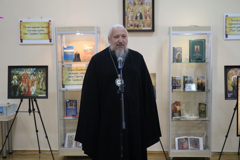 Поприветствовал всех присутствующих и дал добрые напутствия выставочному проекту архиепископ Гомельский и Жлобинский Стефан. Владыка подчеркнул важность подобных мероприятий для сохранения духовных ценностей и укрепления связи поколений. Он отметил, что жизнь Серафима Саровского является примером самоотверженного служения Богу и людям, а его наследие остаётся актуальным и вдохновляющим и в наши дни.