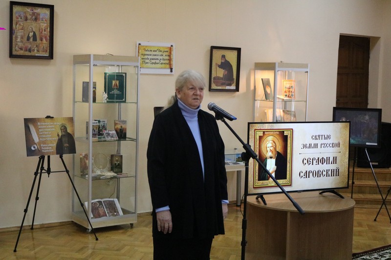 О значении духовного наследия преподобного Серафима Саровского, о создании представленного выставочного проекта гостям встречи рассказала заместитель председателя Витебского городского отделения РОО «Русское общество» Валентина Моисеенко.
