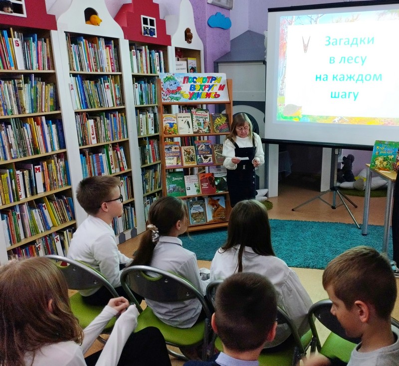 100-летию со дня рождения русского детского писателя-анималиста Юрия Дмитриева был посвящён час познаний и открытий «Здравствуй, белка! Как живёшь, крокодил?». 17 апреля юным читателям из 4 «Б» класса СШ № 24 была представлена презентация «Мир природы Юрия Дмитриева». Библиотекарь Валентина Лукьянова рассказала, как учитель русского языка стал писателем, выбрав для своего творчества мир живой природы. Как общаются животные, какие у них бывают привычки и повадки, как человек проникает в тайны наших соседей по планете – на эти и другие вопросы нашлись ответы в книгах писателя. Увлекла ребят игра «Шапка-невидимка» о хитростях маскировки животных, построенная по книге Ю. Д. Дмитриева «Хитрецы и невидимки». Непридуманные занимательные истории, взятые из книги «Лесные загадки», подтолкнули ребят к решению стать исследователями природы.