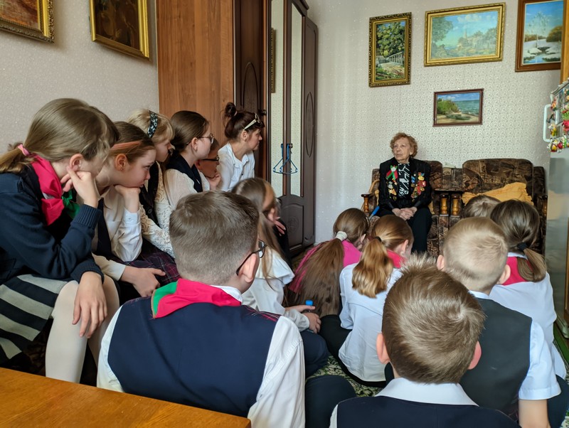 30 апреля состоялась встреча учащихся 4 «А» класса СШ № 11 с бывшей малолетней узницей немецкого концлагеря, председателем Гомельской областной организации общественного объединения «Белорусская ассоциация бывших несовершеннолетних узников фашизма» Анной Сергеевной Михайловой. Вместе с библиотекарем Валентиной Лукьяновой и классным руководителем Натальей Орловой школьники посетили Анну Сергеевну на дому, чтобы услышать воспоминания очевидца той страшной войны.