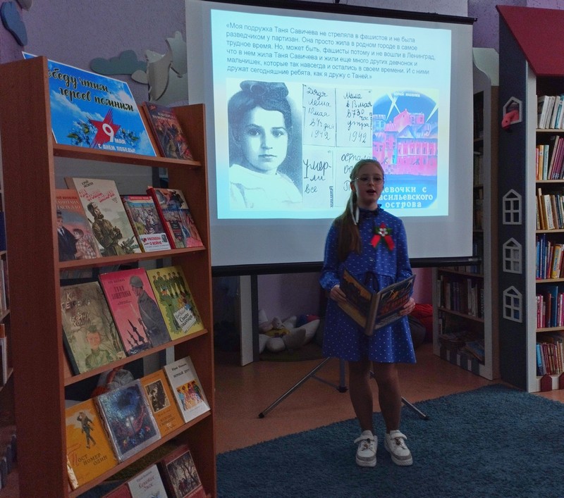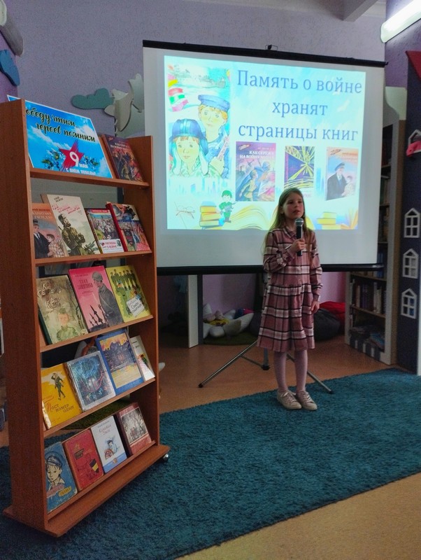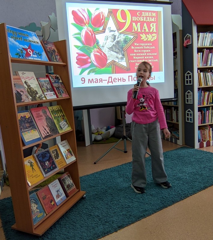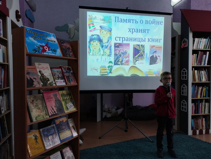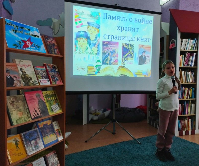 Юные читатели также представили книги о героических событиям войны, эмоционально исполнили стихи и песни, посвящённые Дню Победы.