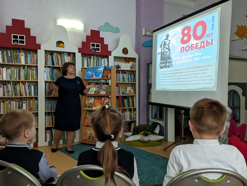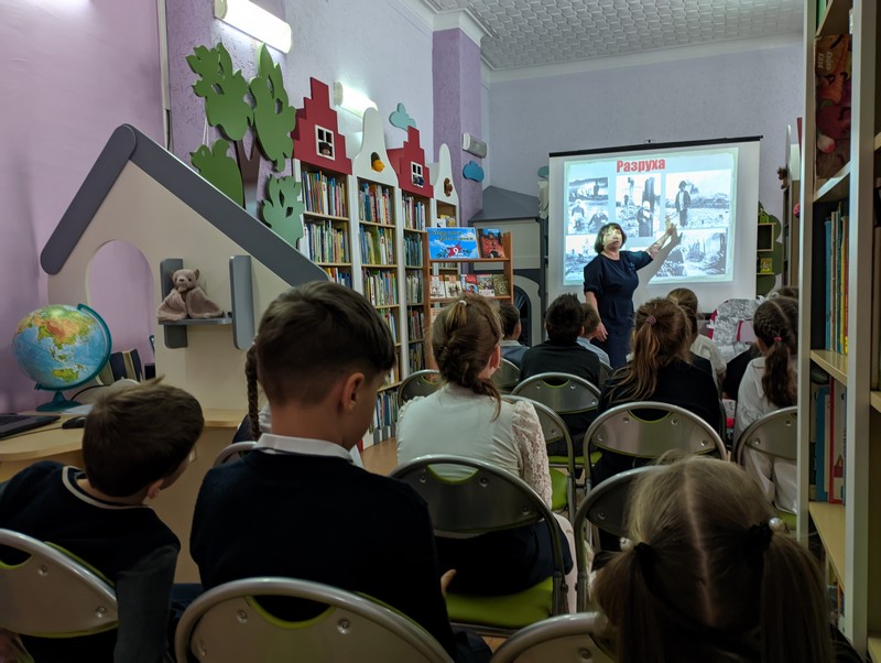 Затаив дыхание, слушали учащиеся 5 «С» класса СШ № 24, 2 «А» класса СШ № 24 и 4 «Б» класса СШ № 24 заведующего отделом Наталью Никитину, которая подготовила медиапрезентацию «Победу чтим! Героев помним!» о начале Великой Отечественной войны, защите Брестской крепости, героической битве за Москву и блокадном Ленинграде. Школьники узнали о Героях Советского Союза Алексее Маресьеве, Борисе Царикове, Константине Рокоссовском, Зинаиде Туснолобовой-Марченко, Константине Заслонове и других, чьи подвиги стали неоценимым вкладом в дело общей Победы.