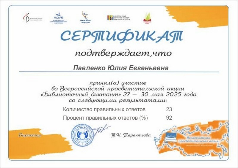 Участники, прошедшие тест, получили электронный сертификат участника акции.