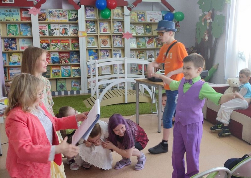 В этот день для юных читателей отдела обслуживания 1–5 классов был организован праздник «Детство – это я и ты!». Побывав в гостях у Лета, ребята отгадывали загадки, играли в весёлые игры. Всех увлекла сказка-экспромт «Летняя полянка».