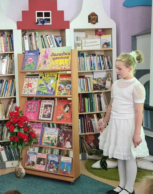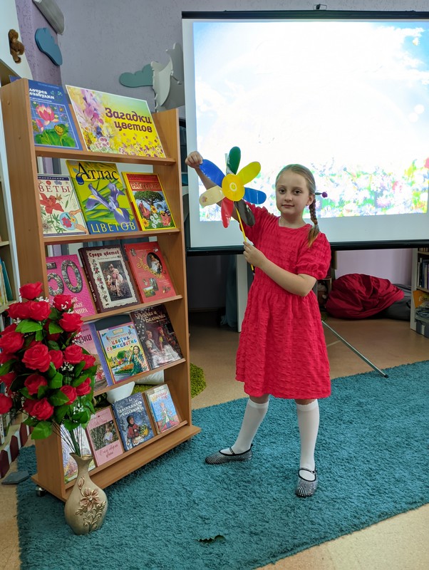 Побывав в волшебном саду у Цветочницы из сказки Х. К. Андерсена «Снежная королева», юные читатели вспомнили сказки, где встречаются цветы. Участники мероприятия называли изображения цветов по-белорусски. О любимом нашим народом васильке ребята узнали красивые легенды и прочитали стихи.