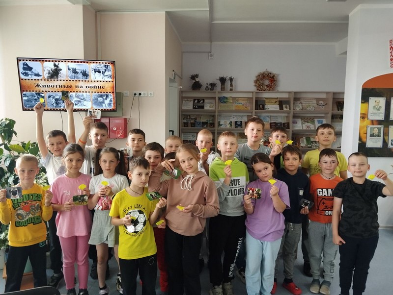 9, 11, 16, 19 и 20 июня библиотекарь Нина Межейникова провела для ребят из СШ № 48, № 57 и № 45, № 74 и № 54 беседу «Быль о верности: животные на войне». В тяжёлые годы рядом с солдатами на фронте воевали и те, кого мы называем нашими меньшими братьями: звери и птицы. Им не давали орденов, они не получали званий. Животные совершали подвиги, погибая, спасали тысячи человеческих жизней.