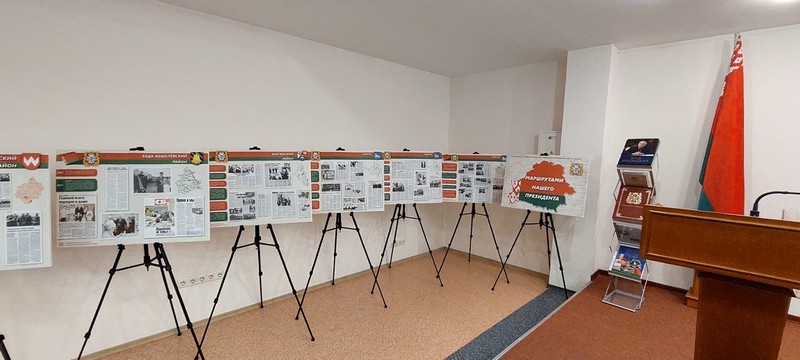 Выставочный проект «Маршрутами нашего Президента» создан по газетным публикациям, которые хранятся в фонде областной библиотеки. Проект позволяет проследить хронологию и тематику рабочих визитов Александра Лукашенко по Гомельской области, начиная с 1994 г., и демонстрирует достижения во всех сферах экономического и социального развития региона.