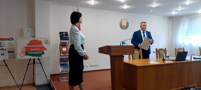 26 июня в канун главного государственного праздника – Дня Независимости Республики Беларусь – заместитель директора Гомельской областной библиотеки Татьяна Барабанщикова провела презентацию выставочного проекта «Маршрутами нашего Президента» для коллектива Гомельского областного управления Фонда социальной защиты населения Министерства труда и социальной защиты Республики Беларусь.