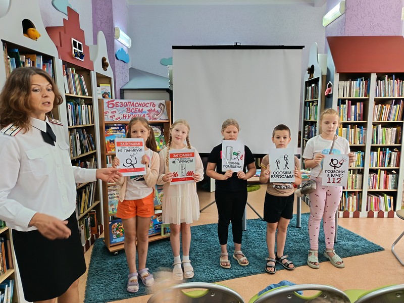 В ходе мероприятия ребятам была представлена книжная выставка с изданиями о правилах действия в экстремальных ситуациях. После просмотра обучающих мультфильмов из серии «Волшебная книга» все дети получили в подарок книжные закладки с правилами безопасности.