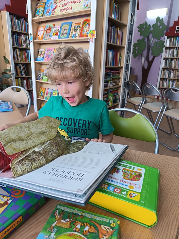 Мальчишки и девчонки познакомились с библиотекой и были приятно удивлены сказочной обстановкой и разнообразием книг. Большой интерес вызвала музейная экспозиция про двух деревянных человечков – Буратино и Пиноккио, которая создана в детском отделе. Ребята порассуждали о правилах бережного отношения к книге, поиграли в игру «Что любит книга?» и блеснули знанием сказок в ходе викторины.