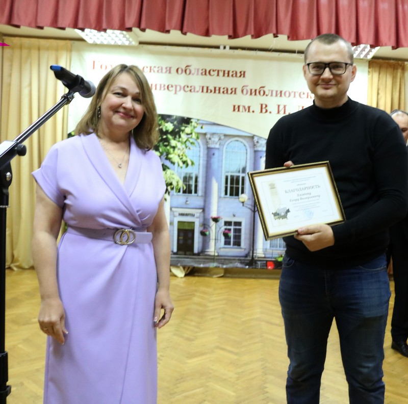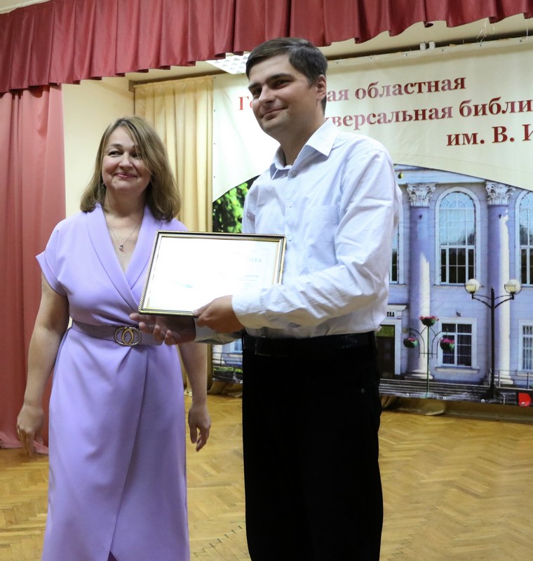 Директор библиотеки Татьяна Забияко, тепло поздравив коллектив с профессиональным праздником, вручила ПОЧЁТНЫЕ ГРАМОТЫ Гомельской областной библиотеки заместителю директора Денису Плешанкову за высокий профессионализм и результативную работу по поддержанию библиотеки в образцовом порядке, заведующему отделом хранения основного фонда Екатерине Жуковой за активное участие в проведении значимых социокультурных мероприятий, администратору баз данных отдела автоматизации библиотечных процессов Виталию Седько за обеспечение стабильной работы компьютерных систем и сетей. БЛАГОДАРНОСТЬ Гомельской областной библиотеки за добросовестный труд и образцовое исполнение должностных обязанностей объявлена бухгалтеру I кв. категории Светлане Глытовой и вахтёру административно-хозяйственного отдела Егору Хазееву.