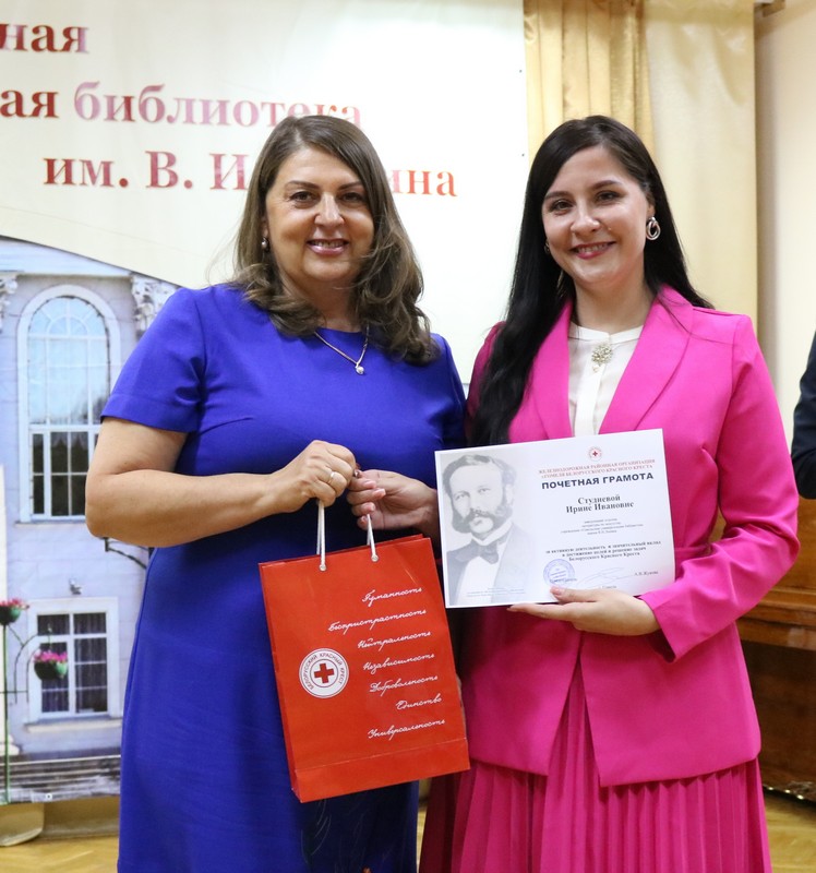 Председатель Железнодорожной районной организации города Гомеля Белорусского Общества Красного Креста отметила плодотворное сотрудничество с Гомельской областной библиотекой в организации крупных мероприятий и выразила БЛАГОДАРНОСТЬ заведующему отделом литературы по искусству Ирине Студневой.