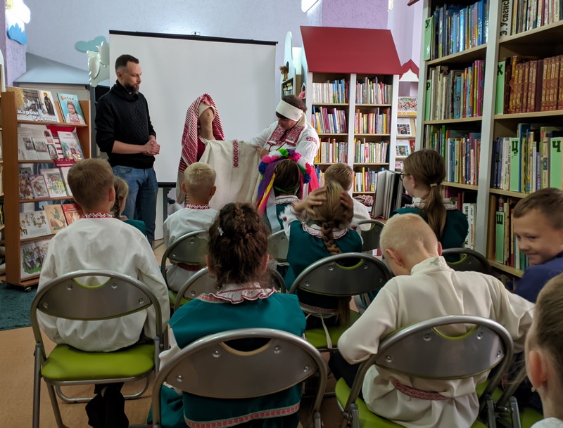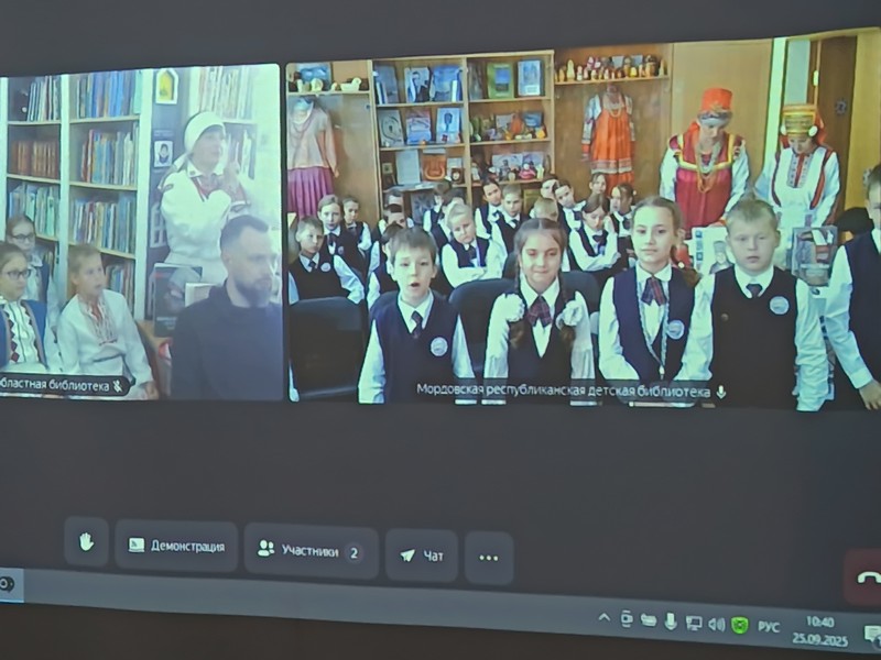 25 сентября в отделе обслуживания учащихся 1–5 классов состоялся очередной видеомост «Народный костюм – душа народа» с библиотекарями и юными читателями Мордовской республиканской детской библиотекой. Участниками виртуальной встречи стали учащиеся 3–4-х классов СШ № 24 г. Гомеля и 3 «А» класса гимназии № 19 г. Саранска.
