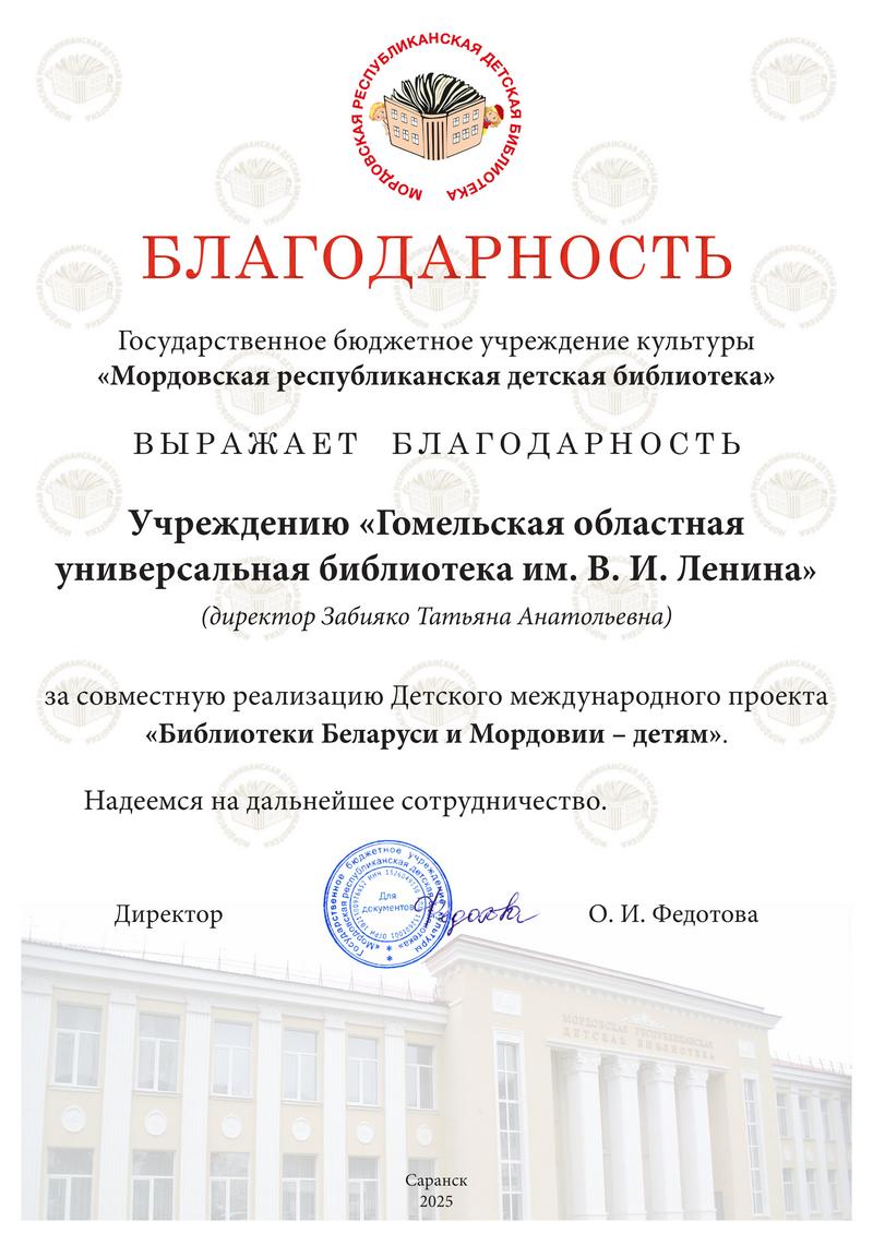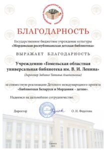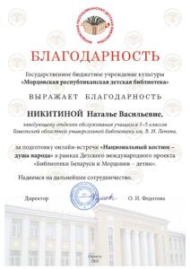 В заключение видеовстречи юные гомельчане выразили благодарность за интересное и познавательное мероприятие ведущей встречи Наталье Никитиной, заведующему детским отделом, а также саранским ровесникам и библиотекарям.