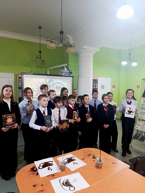 В ходе мероприятия школьники приняли участие в Кофейной викторине, проявили свои знания в интеллектуальных играх и конкурсах, познакомились с книгами на кофейную тематику. А в завершение мероприятия все записались в библиотеку.