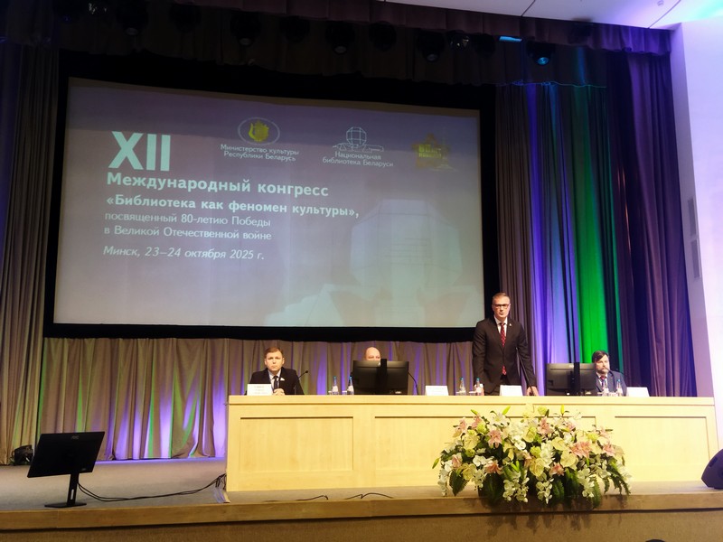 23–24 октября работники Гомельской областной библиотеки – директор Татьяна Забияко, учёный секретарь Светлана Курашова, заведующий отделом обслуживания учащихся 1–5 классов Наталья Никитина и заведующий отделом краеведения Светлана Крылова – приняли участие в торжественном открытии и работе XII Международного конгресса «Библиотека как феномен культуры», посвящённого 80-летию Победы в Великой Отечественной войне.