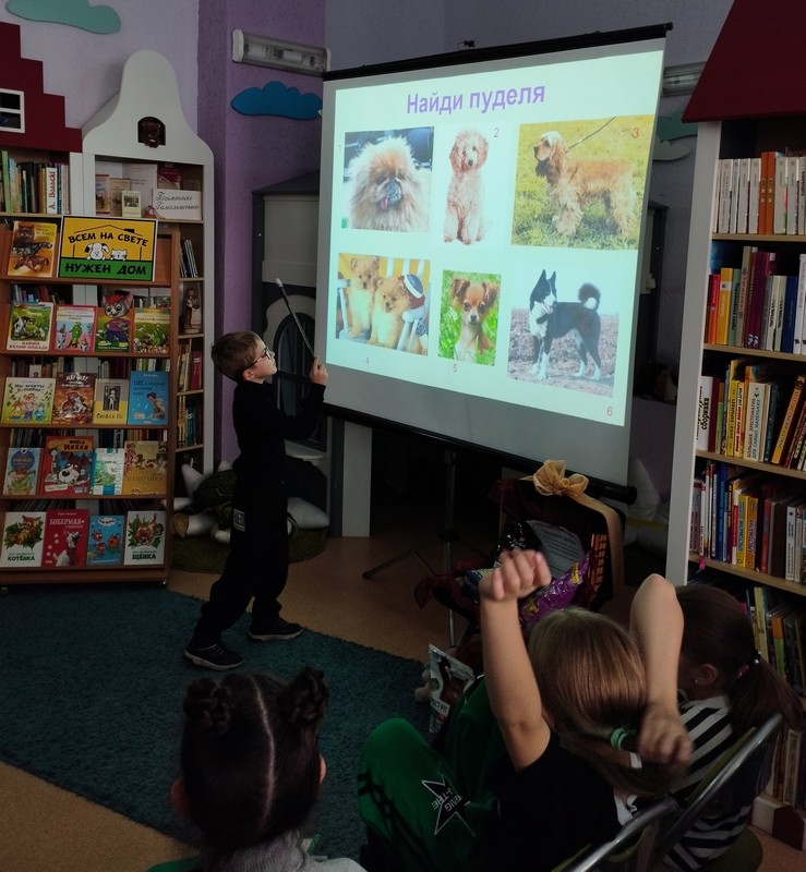 Для презентации к мероприятию ребята заранее прислали фото домашних питомцев и активно делились своими наблюдениями за любимцами, рассказывали разные истории из их жизни, отвечали на вопросы викторины «Мисс Кис и Мистер Гав», играли в игру «Человек находит друга», предложив родителям вспомнить хозяев кошек и собак – героев книг.