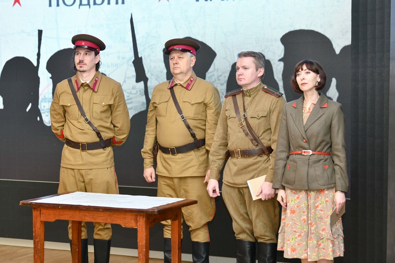 Подготовку Гомеля к обороне и эвакуации предприятий и гражданского населения, объединение молодёжи города перед лицом врага показали гостям презентации проекта сценические постановки в исполнении актёров народного любительского театра «Грачи» – единственного в нашей стране библиотечного театрального коллектива с наименованием «народный».