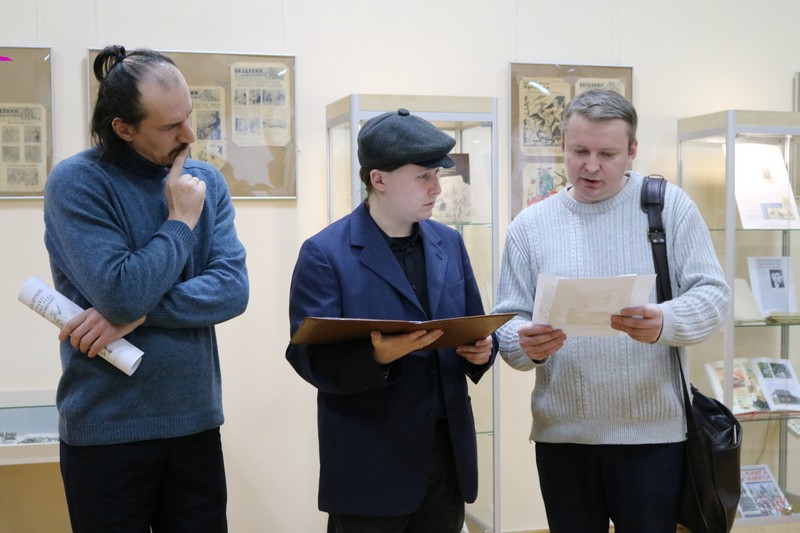 Вниманию гостей библиотеки были представлены дневники Виталия Букатого, хранящиеся в фондах музея Гомельского дворцово-паркового ансамбля, и газеты-плакаты «Раздавим фашистскую гадину!» из частной коллекции Александра Шелипова.