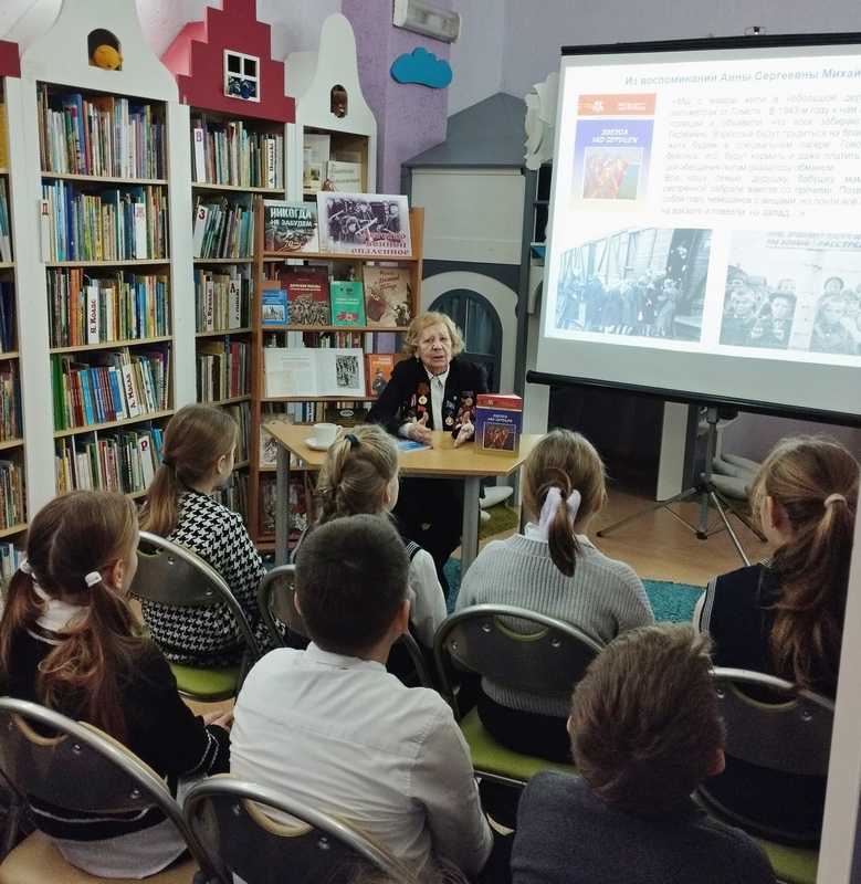 Анна Сергеевна рассказывала детям о тяготах, лишениях и потерях, которые ей и её семье довелось пережить в немецких трудовых лагерях, куда их увезли за неделю до освобождения Гомеля. Ей больно вспоминать о том, как умирали от холода и голода дети, как чудом осталась в живых она сама. Из воспоминаний очевидца войны дети узнали, каким разрушенным увидела Гомель семья Анны Сергеевны при возвращении домой, как восстанавливали родной город из руин, как дети послевоенной поры, несмотря на лишения, хотели учиться.