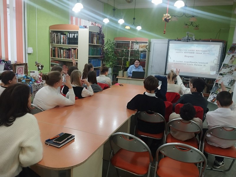 4 декабря День Наума Грамотника отметили в отделе обслуживания учащихся 6–9 классов, где ребята из СШ № 24 узнали, что раньше учебный год начинался не с 1 сентября, а с 14 декабря в День Наума Грамотника – это был праздник посвящения в ученики. В ходе мероприятия учащиеся были очень активны и проявили хорошие знания орфоэпии, лексики и фразеологии.