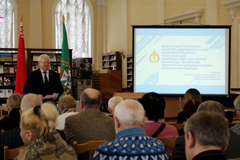 29 января в Гомельской областной библиотеке состоялось отчётно-выборное собрание Гомельского областного отделения Союза писателей Беларуси. Символично, что важное событие в культурной жизни региона произошло в рамках областного Дня писателя и работника культуры накануне 105-летия со дня рождения народных писателей БССР Ивана Шамякина и Ивана Мележа.