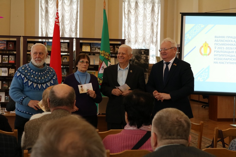 В состав совета писательской организации Гомельской области избраны почётные члены Союза писателей Беларуси Михась Болсун и Евгений Калашников, поэты и публицисты Николай Жданович, Лилия Величко и Тамара Крюченко, прозаики Михась Ковалёв (Слива) и Николай Демчихин, драматург и режиссёр Алексей Бычков; ревизор – поэтесса Лидия Долбикова.
