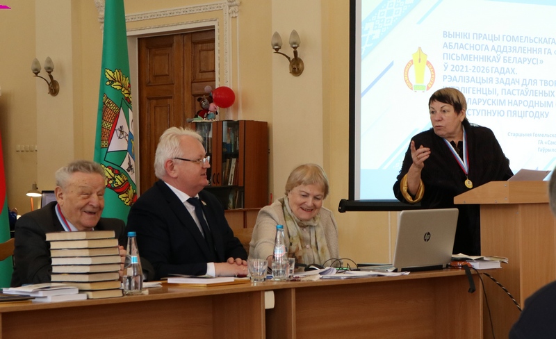 С приветственным словом и высокой оценкой их творческой деятельности к писателям Гомельщины обратилась Татьяна Забияко, член коллегии главного управления культуры облисполкома, директор Гомельской областной библиотеки.