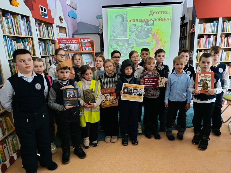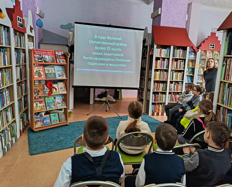 Патриотический час «Войной украденное детство», приуроченный к этой дате, для ребят из 2-х классов СШ № 15 и № 24 состоялся 6 февраля. Затаив дыхание, школьники слушали рассказ заведующего отделом Натальи Никитиной о тяжёлых испытаниях, выпавших на долю их ровесников во время Великой Отечественной войны. По книгам, представленным на тематической выставке «Маленькие герои большой войны», читатели узнали имена юных героев, прикоснулись к подвигам ребят, вставших рядом с отцами на защиту своей Родины.