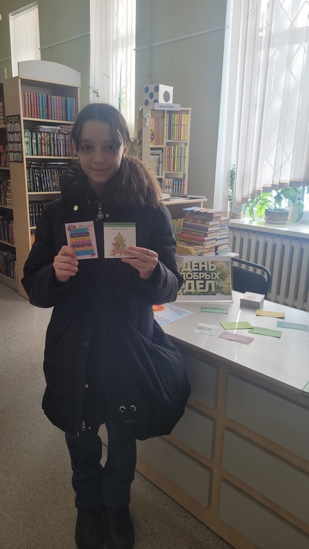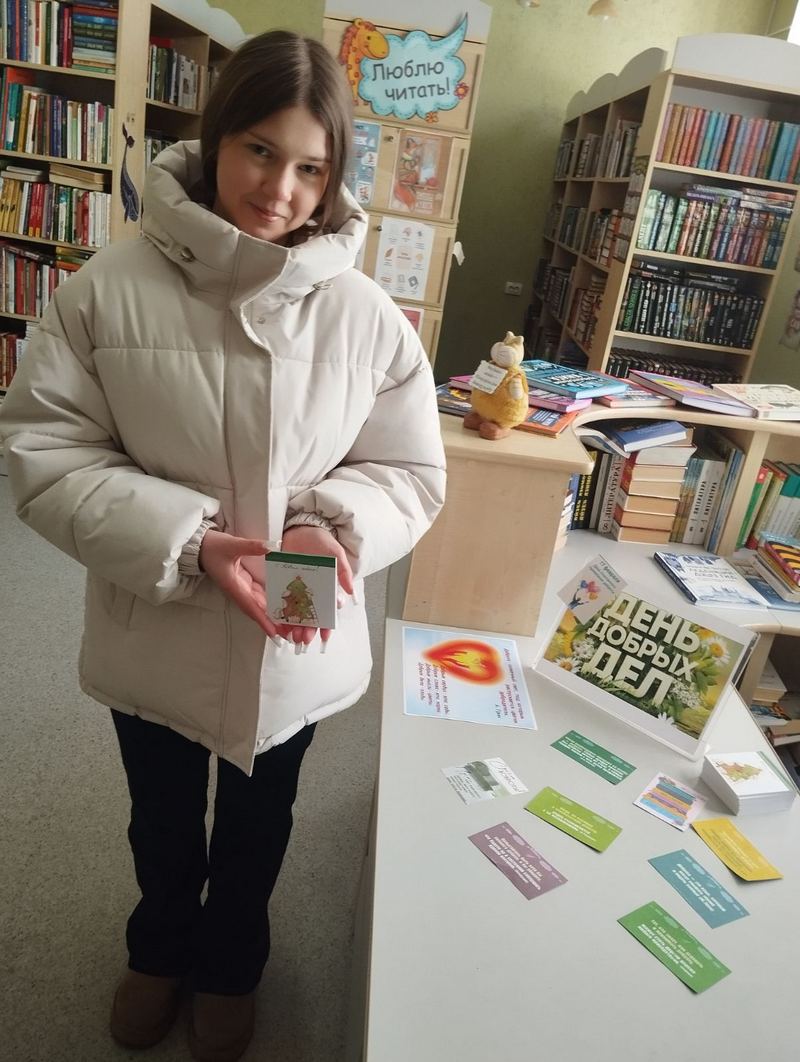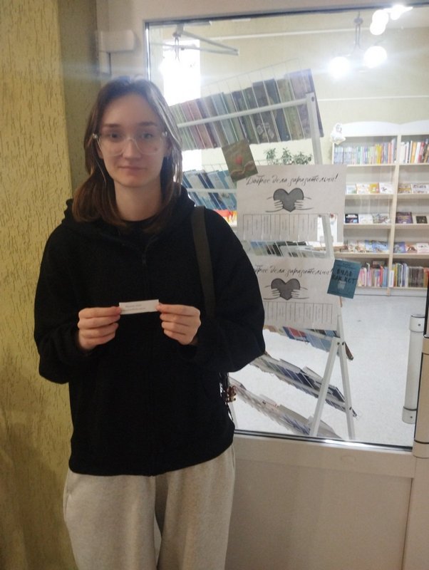 В этот день, как и всегда, библиотекари встречали читателей улыбками и комплиментами, а также предлагали им поучаствовать в акции «Копилка пожеланий». Каждый мог выбрать себе пожелание от известных философов и психологов и приятный подарочек от отдела. Многие читатели с удовольствием отрывали листочки с добрыми делами, которые им предстоит сделать.