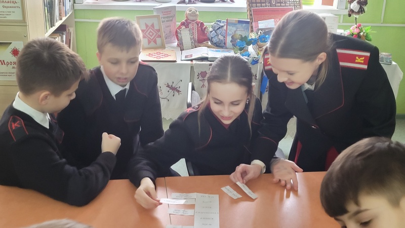 В этот день в отделе обслуживания учащихся 6–9 классов прошла познавательно-игровая программа «Гучы, беларускае слова!» для семиклассников СШ № 21. Библиотекарь рассказала интересные исторические сведения о развитии белорусского языка. Ребята в ходе мероприятия выполняли разнообразные задания: делали перевод словосочетаний с русского языка на белорусский, продолжали пословицы и поговорки на белорусском языке, правильно отвечали на все вопросы викторины о родном языке.