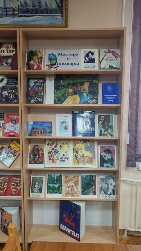 К лекции была организована книжная выставка «Мастера и шедевры», представившая издания о творчестве Марка Шагала.