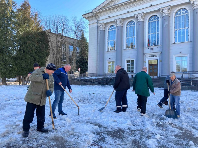 14 марта в Гомеле прошёл общегородской субботник. Присоединившись к масштабной акции порядка и чистоты, работники Гомельской областной библиотеки во главе с директором Татьяной Забияко приводили в порядок территорию у здания библиотеки. В итоге последний островок зимы поддался лопатам и лучам мартовского солнца!