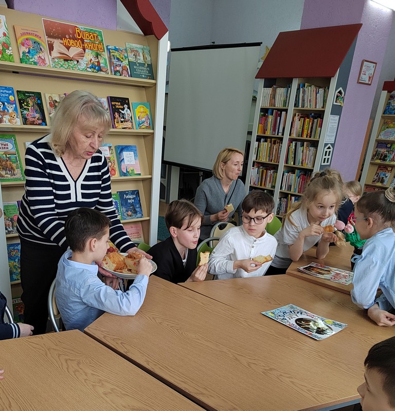 Учащиеся познакомились с книжной выставкой «Пасхальные дары», на которой были представлены книги русских писателей о «празднике праздников». Приятным сюрпризом для детей стал пасхальный кулич, которым угостились все участники мероприятия.