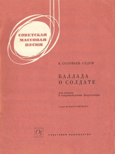 Баллада о солдате [Ноты]: для голоса в сопровождении фортепиано \ Василий Павлович Соловьёв-Седой. – Москва: Советский композитор, 1967. – 4 с.