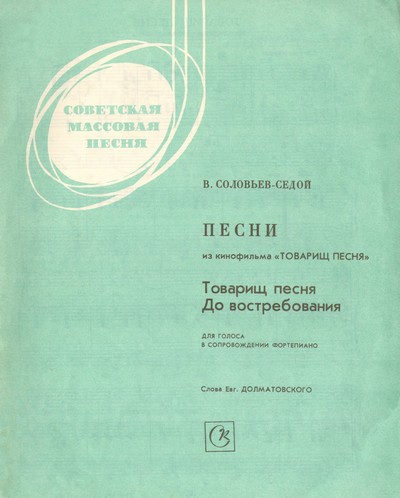 Песни [Ноты]: из кинофильма «Товарищ песня» для голоса в сопровождении фортепиано \ Василий Павлович Соловьёв-Седой. – Москва: Советский композитор, 1967. – 8 с.