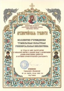 за труды во славу святой церкви в Гомельской епархии и большой вклад в формирование духовно–нравственных ценностей, за активную просветительскую деятельность