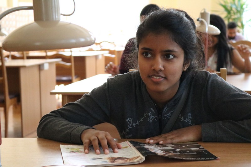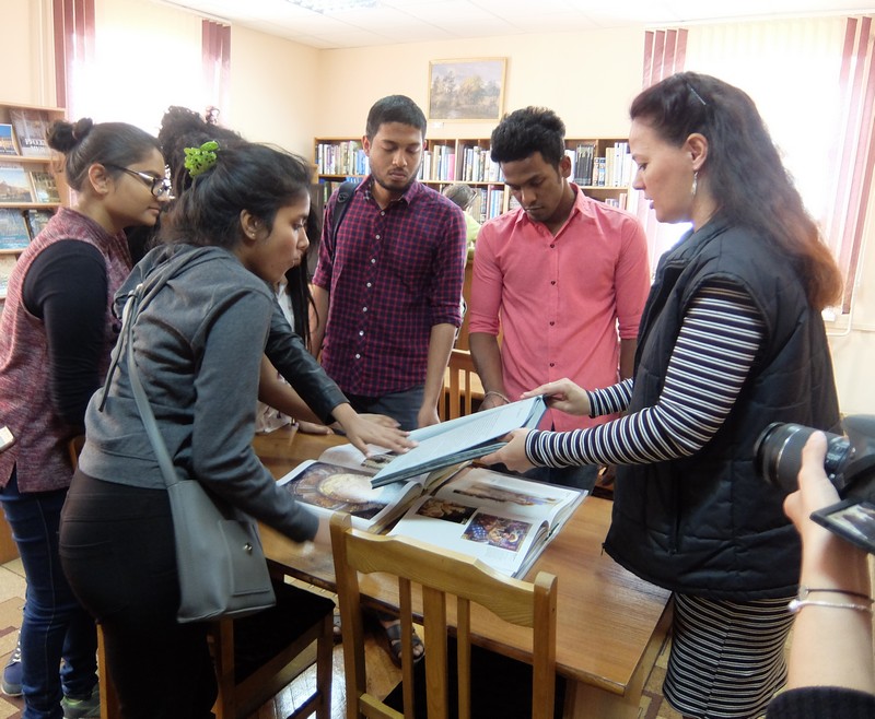 Студенты I курса Гомельского государственного медицинского университета (факультет подготовки специалистов для зарубежных стран) приехали в наш город именно оттуда. Экскурсию по библиотеке провела на английском языке сотрудница отдела литературы на иностранных языках Юлия Абрамович.