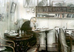 Л. Н. Толстой за работой в библиотеке в Ясной поляне |