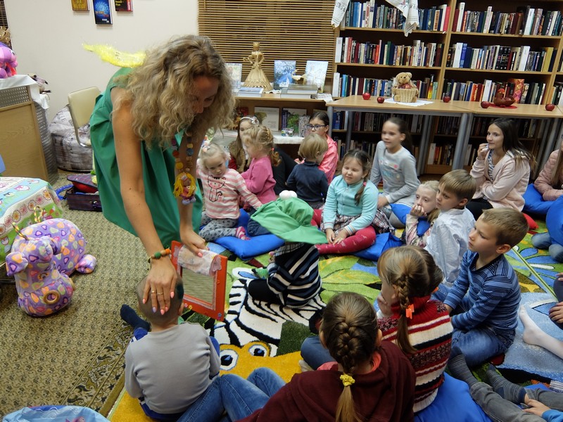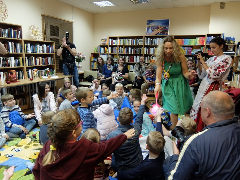 После небольшого перерыва дети и родители услышали волшебную историю о любви, отваге, невероятных приключениях и настоящих чудесах. Ее рассказала удивительная белорусская сказочница Надея Ясминска, чья книга «Сем ружаў» («Семь роз») в 2016 году стала лауреатом первой литературной премии имени Тетки (Алоизы Пашкевич) для детских писателей и иллюстраторов детских книг, поскольку премию получила не только автор, но и художница Екатерина Дубовик, которая оформила эту книгу. Творческий вечер Надеи Ясминска и презентация ее новой книги «Восковой волшебник» состоялась в нашей библиотеке накануне, 14 сентября, и многие дети пришли к нам снова, чтобы еще раз послушать сказку в исполнении автора.