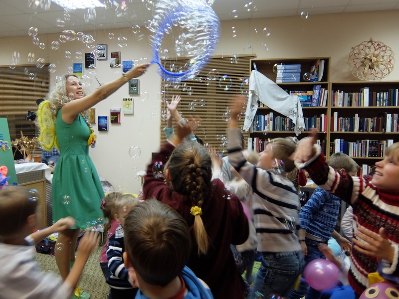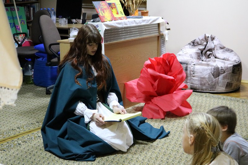 Вот уже более двух лет в Минске существует социально-образовательный проект «Альтанка для чытанкi», который был создан, в первую очередь, для особенных деток, а также для популяризации белорусского языка. И гости нашей Библионочи увидели самую настоящую Фею. Театрализованное чтение сказки Миры Лобэ «Маленькое я – это я» (на белорусском языке) никого не оставило равнодушным, а сколько восторга вызвали у детей удивительные звери, волшебный золотой песочек и огромные мыльные пузыри! Каждый ребенок унес с собой маленький подарок от Феи.