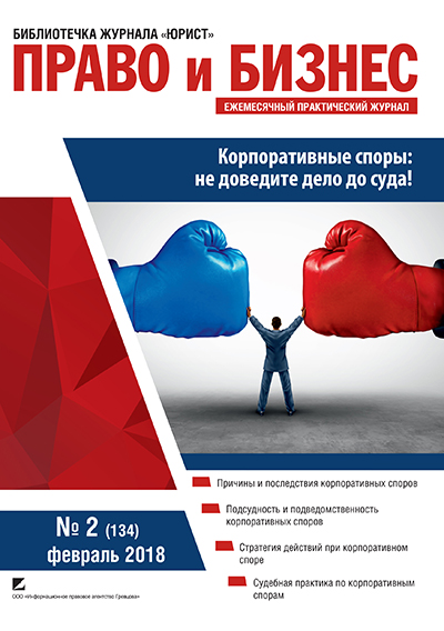 Корпоративные споры: не доведите дело до суда! : [Причины и последствия корпоративных споров; Подсудность и подведомственность корпоративных споров; Стратегия действий при корпоративном споре; Судебная практика по корпоративным спорам] / [авт. И. Аноп и др.]. – Минск : Информационное правовое агентство Гревцова, 2018. – 71 с.. – (Библиотечка журнала “Юрист”. “Право и бизнес”. № 2 (134) февраль 2018).