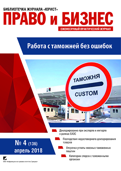 Работа с таможней без ошибок : [Декларирование при экспорте и импорте в рамках ЕАЭС; Последствия недостоверного декларирования товаров; Отсрочка уплаты ввозных товарных пошлин; Категории споров с таможенными органами] / [авт. А. Лойша и др.]. – Минск : Информационное правовое агентство Гревцова, 2018. – 71 с.. – (Библиотечка журнала “Юрист” Право и бизнес № 4 (136), апрель 2018)