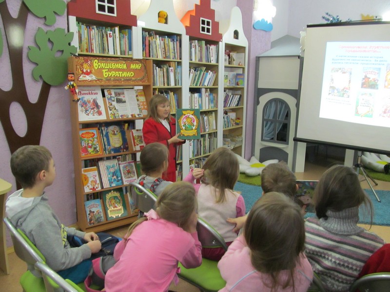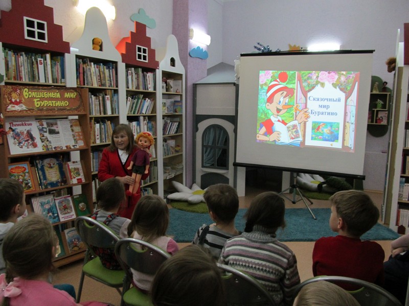 Участниками увлекательного путешествия в волшебный мир Буратино стали юные читатели из детского сада №51. Дети узнали удивительную историю создания знаменитых сказок про Пиноккио и Буратино, увидели видеосюжеты знаменитых книг. Юные читатели с большим интересом вспоминали любимых героев сказки А.Толстого и их приключения по иллюстрациям из разных изданий сказки, а также познакомились с новыми историями про деревянных человечков.